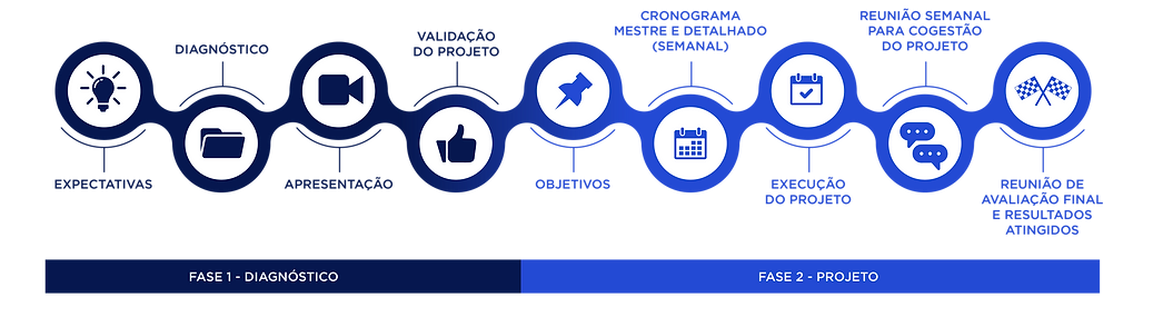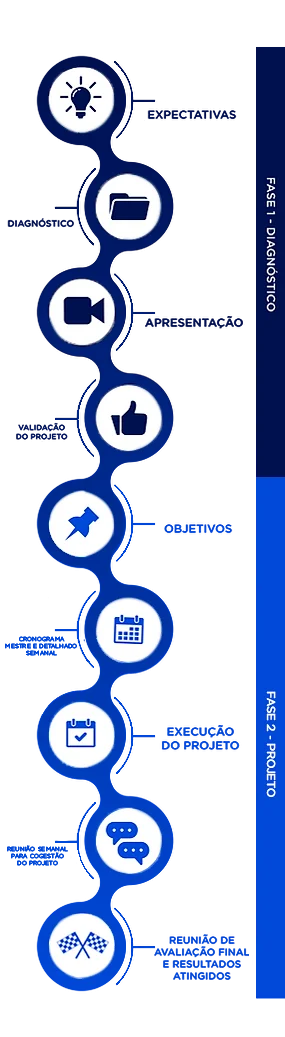 Nossa metodologia começa com um diagnóstico detalhado da empresa, identificando pontos falhos e oportunidades. Em seguida, elaboramos um plano de ação personalizado e acompanhamos a implementação de cada etapa.