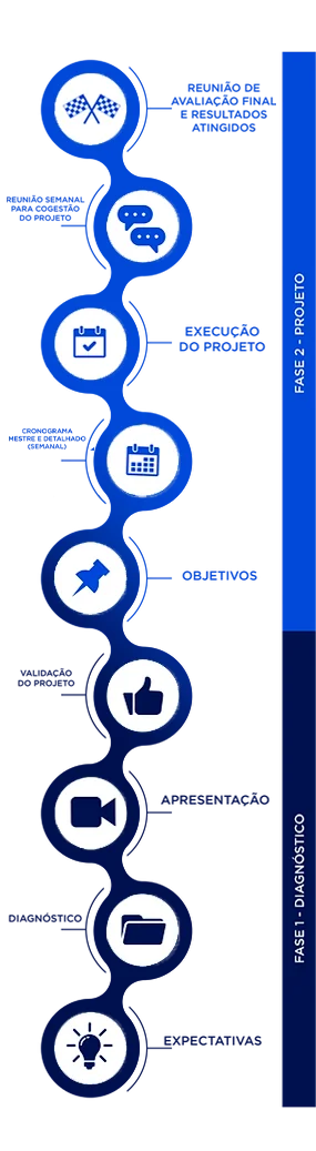 A Consulting Now avalia as áreas pertinentes da empresa, bem como as Expectativas do cliente e identifica a atual situação, apresentando uma proposta de Projeto, contendo: Os objetivos e Potencial de Resultados Nossos honorários PayBack – retorno sobre o investimento no projeto O Cronograma de trabalho com todas as atividades a serem realizadas.